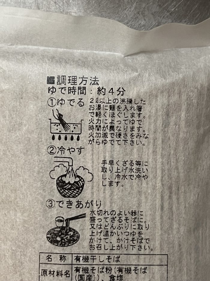 | 原材料 | 有機そば粉(有機そば)国産 食塩 |