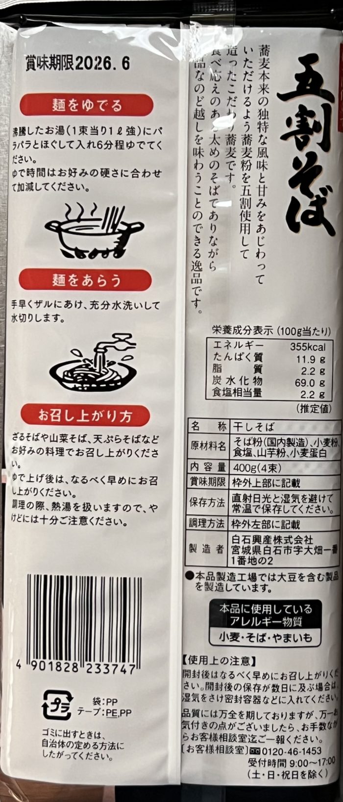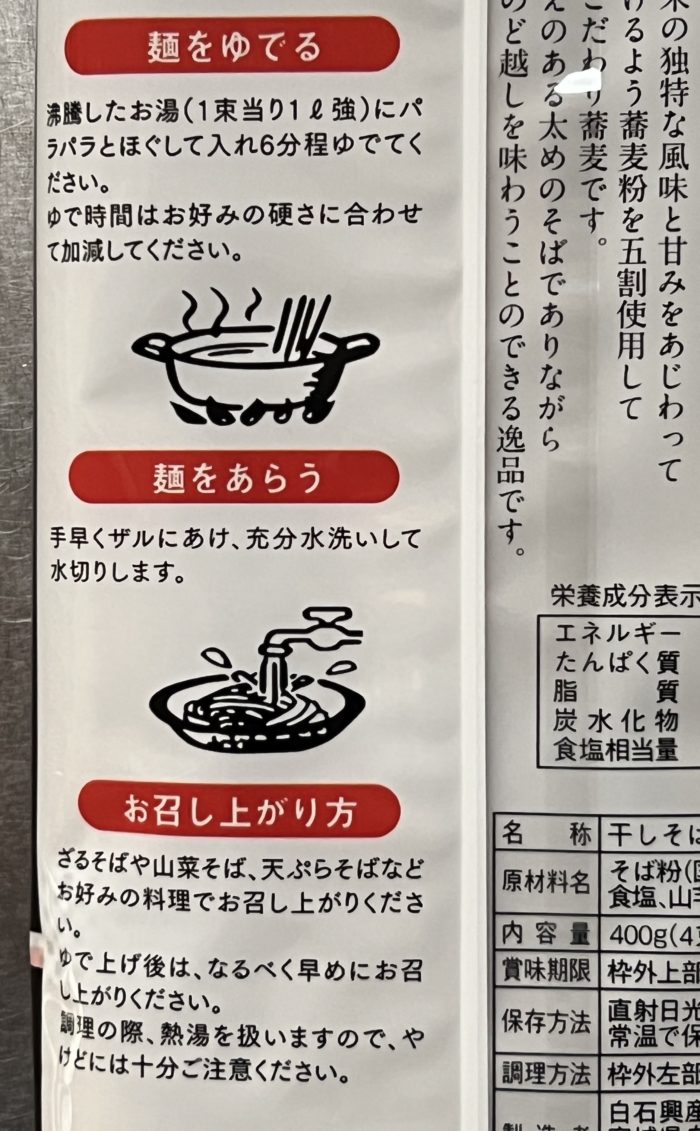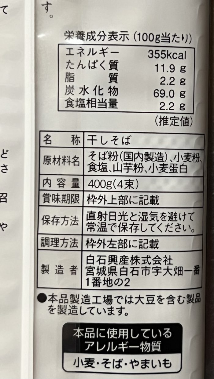| 原材料 | そば粉(国内製造) 小麦粉 食塩 山芋粉 小麦たんぱく |