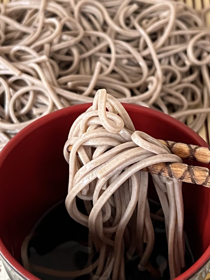 ツユにつければすすりごたえよく、めんの存在感はそのままに、ダシ系のツユなら脇役になるほど、より蕎麦の甘みがある風味が感じられます。