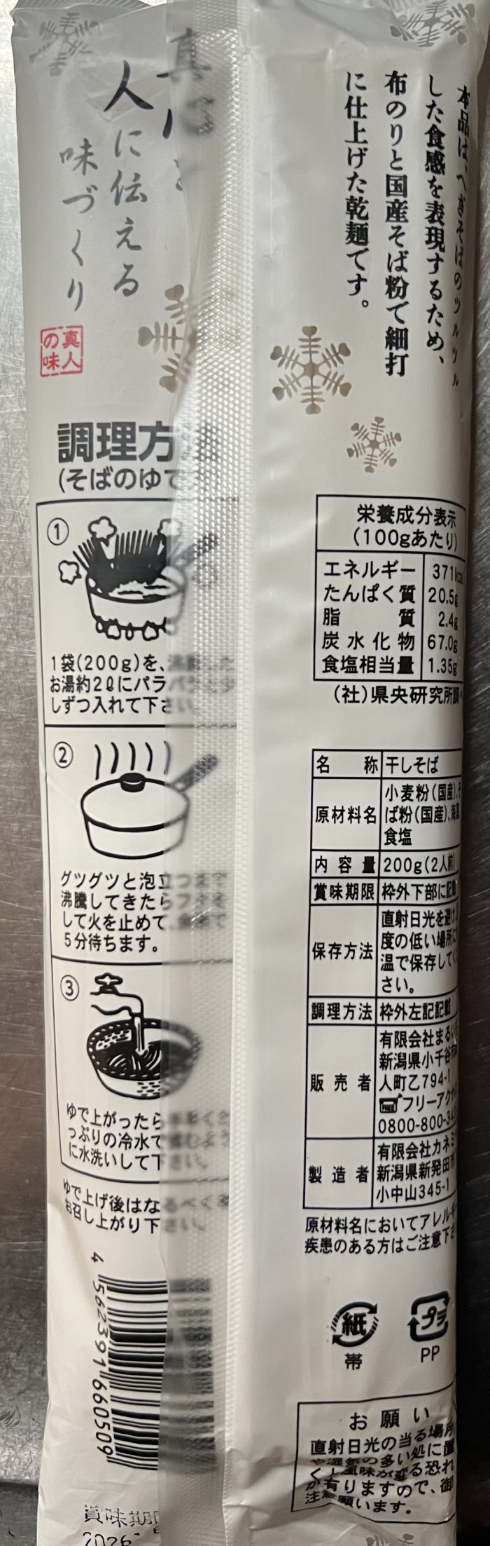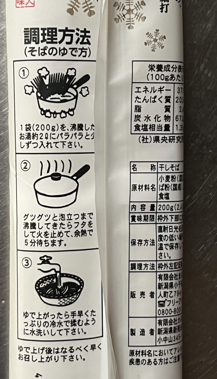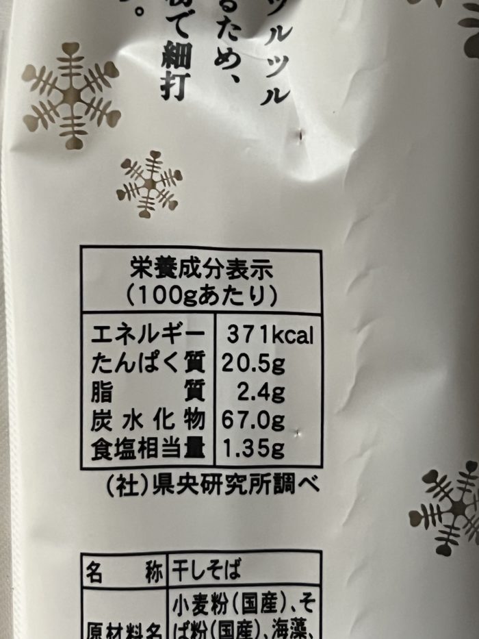 裏面を見てとても興味が湧いて購入した乾麺のへぎそばとなります。