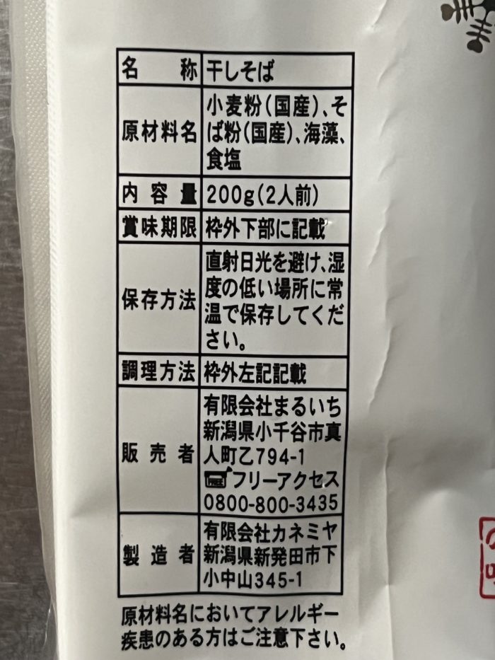 小千谷で蕎麦割烹を構えるまるいちと、90年乾麺製造に取り組む有限会社カネミヤと共同開発を行い、無添加、無化学調味料の乾麺に仕上がったお蕎麦。
