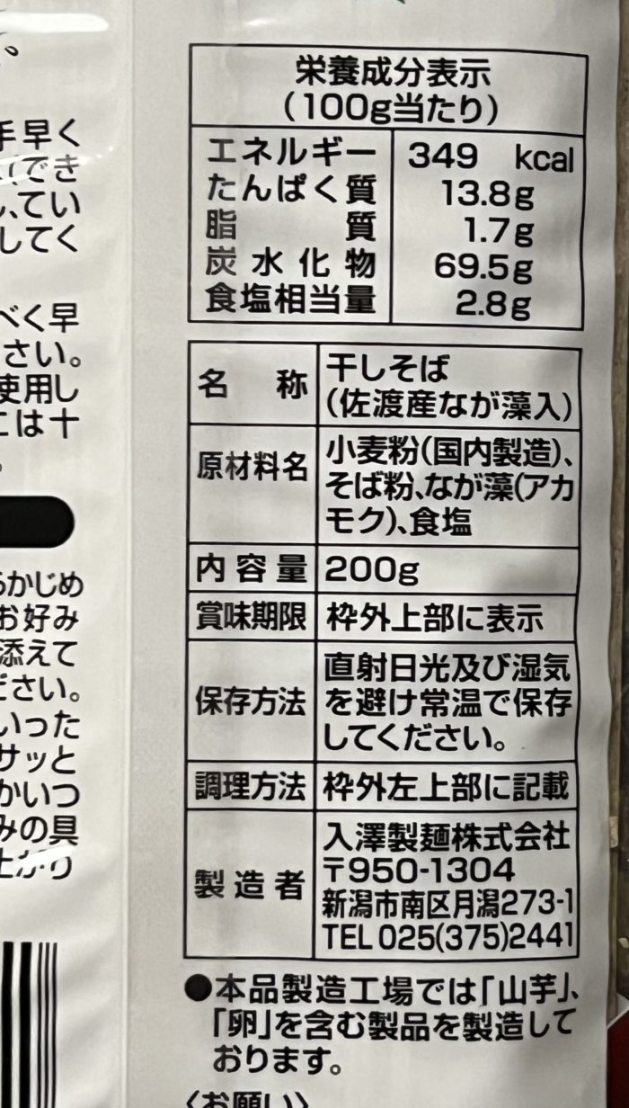| 製造者 | 入澤製麺株式会社 新潟市南区月潟273-1 |