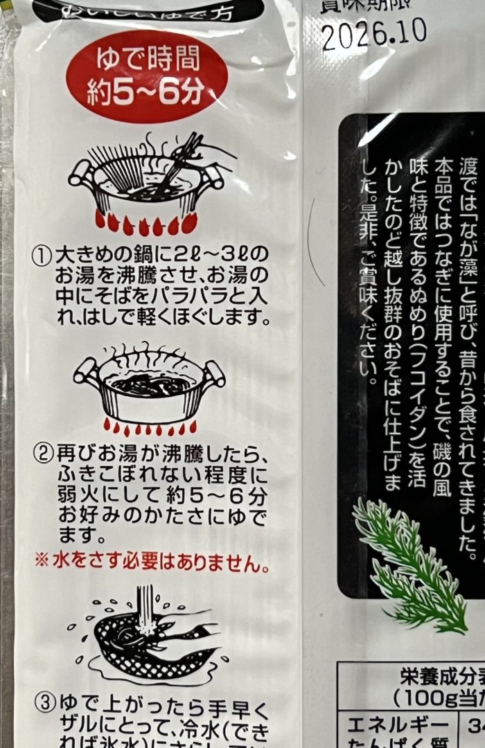 | 原材料 | 小麦粉(国内製造) そば粉 なが藻(アカモク) 食塩 |