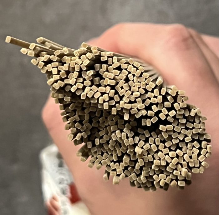 断面は四角、太さは標準-1くらいの細さでした。