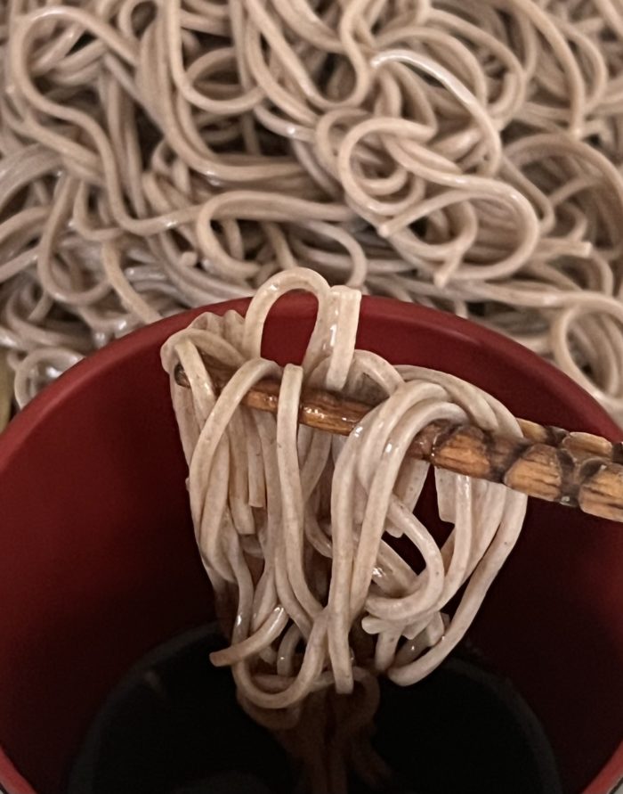 ツユにつければつっかかりのないすすりごたえ、ツユ絡みよく喉越しが良い。