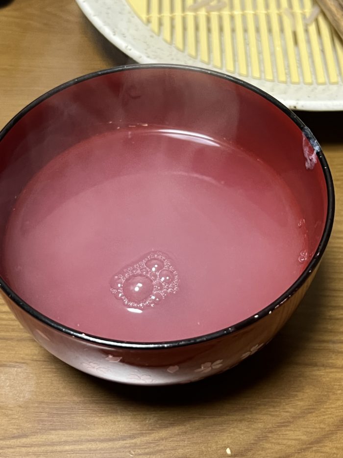 そば湯は薄めですが、つゆに割ればかけそばの残りつゆみたく美味しく飲めます。