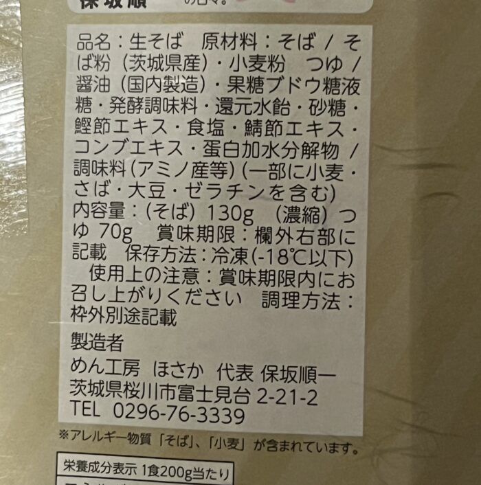 | 原材料 | めん そば粉(茨城県産) 小麦粉 |