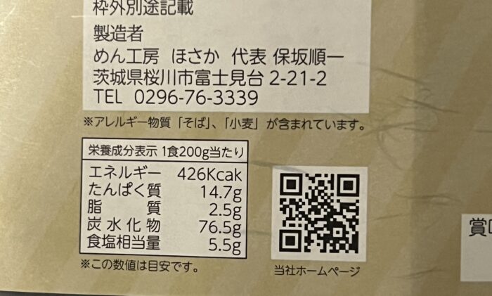 | 製造者 | めん工房 ほさか 茨城県桜川市富士見台2-21-2 |