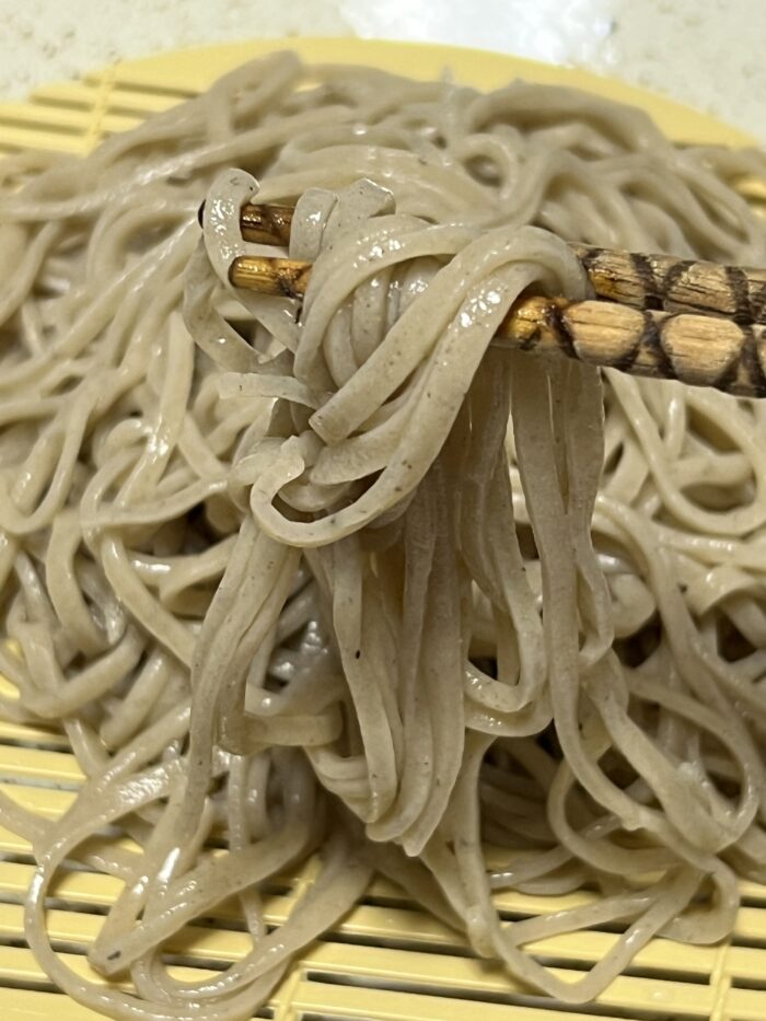 冷凍から冷蔵に5時間ほど置いた蕎麦。