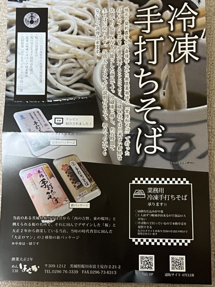 創業大正二年の茨城県は桜川市に見せを構える「めん工房ほさか」が販売する手打ちの冷凍そば。