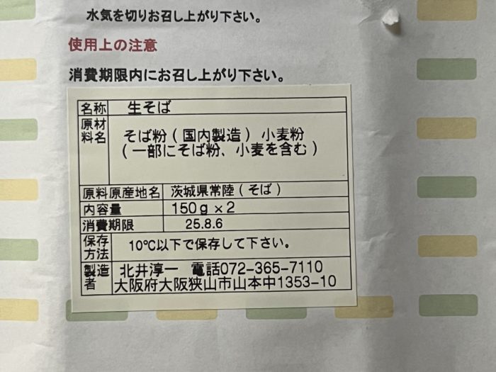 | 原材料 | そば粉(国内製造) 小麦粉 (一部にそば粉、小麦を含む |