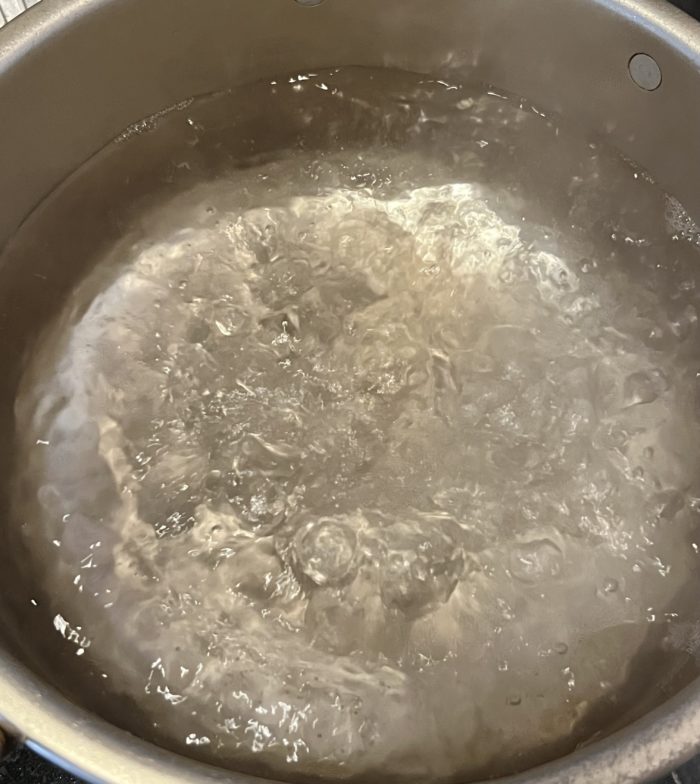 今回2人前湯がくので、3.5リットルのお湯でいつも使っている大きな鍋で1分30秒湯がきました。