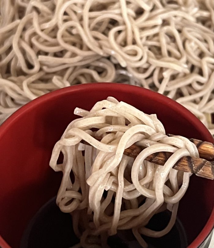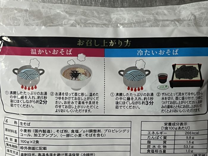 茹で時間は温かいそばで2分、冷たいそばで3分。