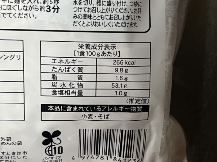 生そばを2食付きで198円、コシのあるモッチリ弾力と食べ応えのある蕎麦で、コスパと気軽さがウリの生そばでした。