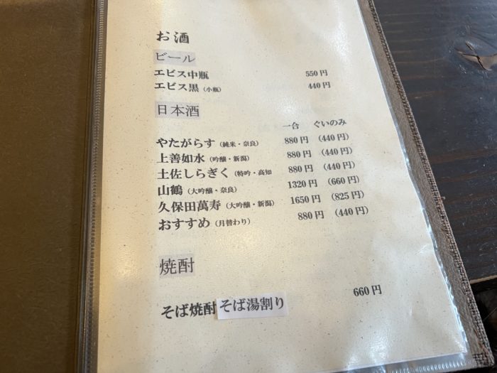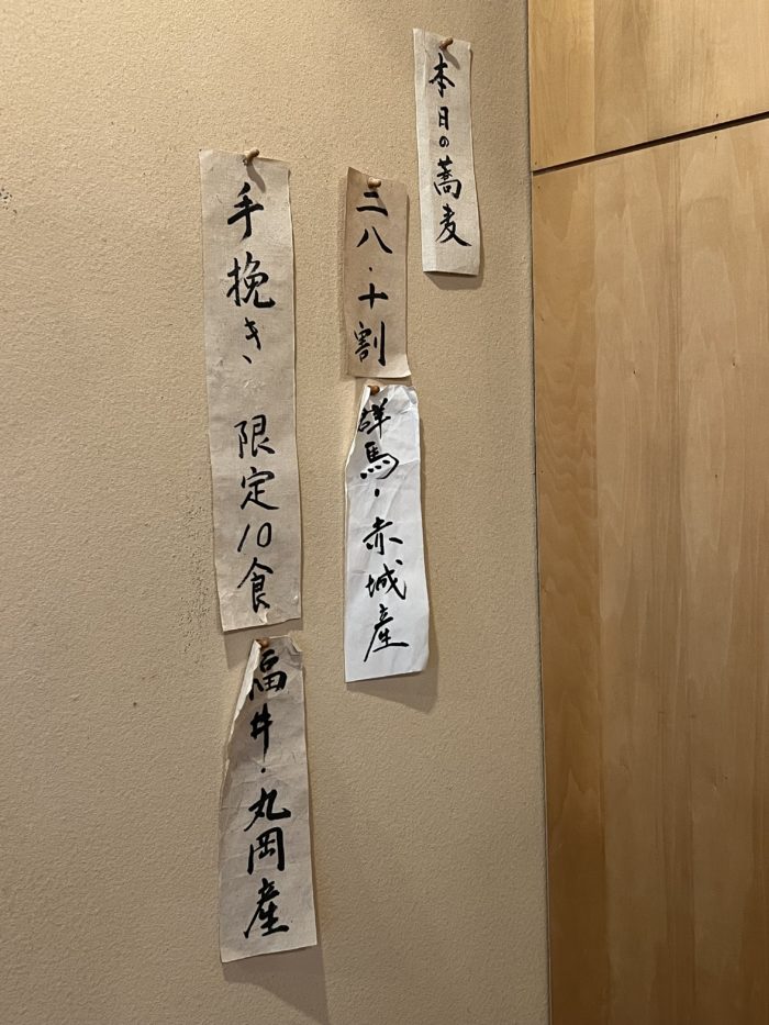 使われる蕎麦が表示されており、今回二八・十割は群馬、赤城産、手挽きは福井・丸岡産でした。