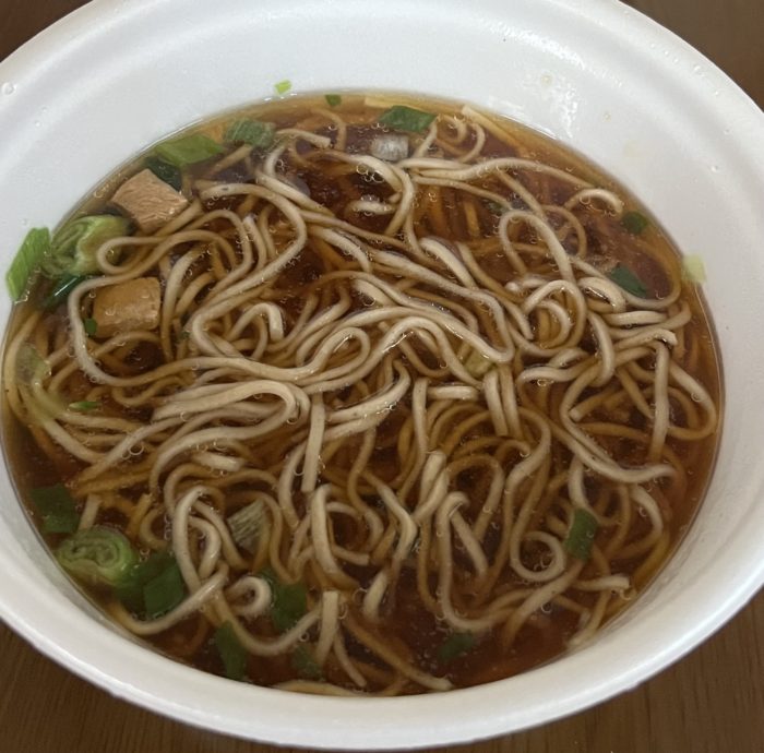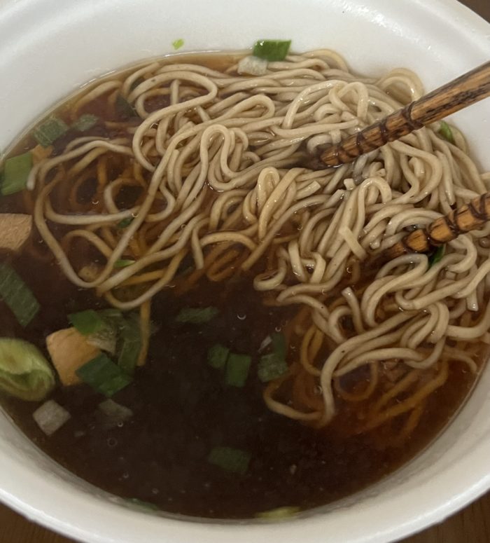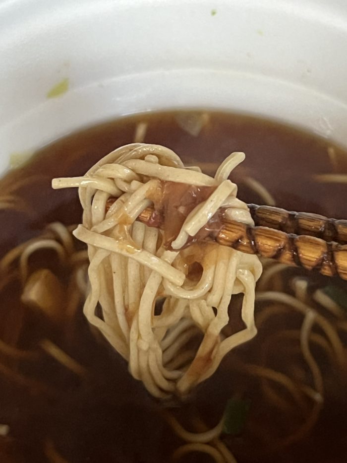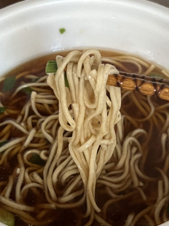 関西系というより関東系のつゆで関西だとヤマダイの凄麺そば系があまり売っておらず、黒こしょうも相まって印象で言えば醤油ラーメンにも近いような。