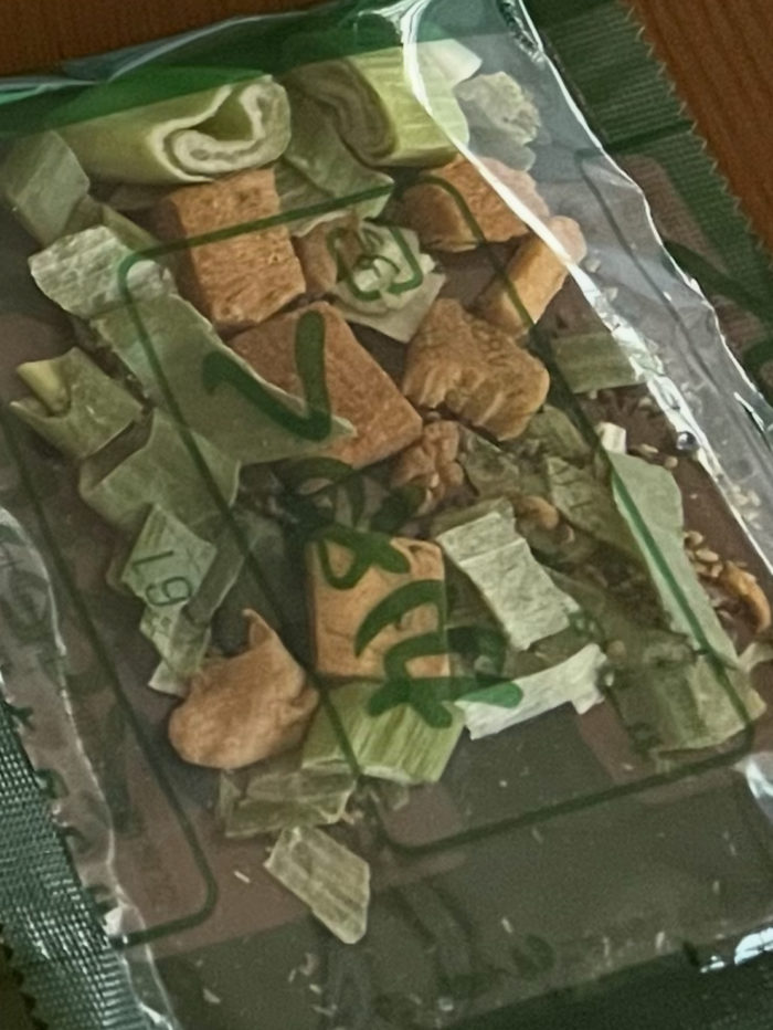 かやく、フリーズドライのねぎ、鶏肉、黒こしょうが入っています。